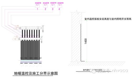 b.一般温控器安装在距离地面1.4m高度;