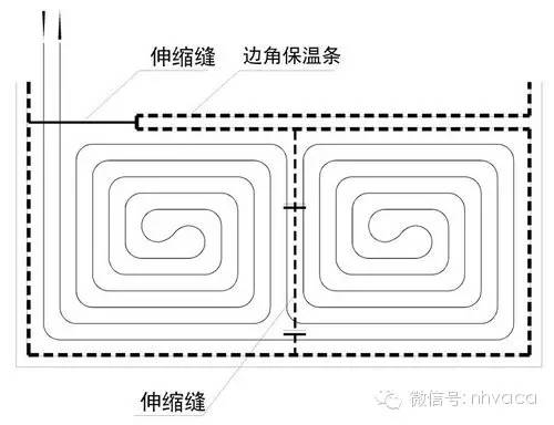 伸缩缝:除墙边设置边界保温带外,在以下位置宜设置伸缩缝:各房间门口处;边长超过8m或面积超过40m 时;平面突出部分。