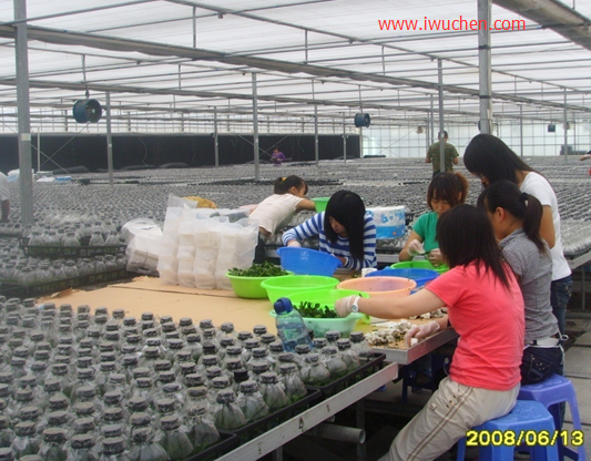 培养材料放在培养架上培养。培养架大多由金属制成,一般设5层,最低一层离地高约lOcm,其他每层间隔30cm左右,培养架即高 1.7m左右。培养架长度都是根据日光灯的长度而设计,如采用40W日光灯,则长I.3m,30W的长lm,宽度一般为60cm。日光灯一般用40W,固 定在培养架的侧面或搁板的下面,每层有两支日光灯,距离在20cm,光照强度为2000-3000lx。