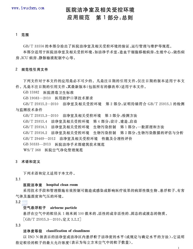 洁净室及相关受控环境应用规范(GB/T33556.1-2017)全文完整版 医院洁净室及相关受控环境应用规范(GB/T33556.1-2017)" />