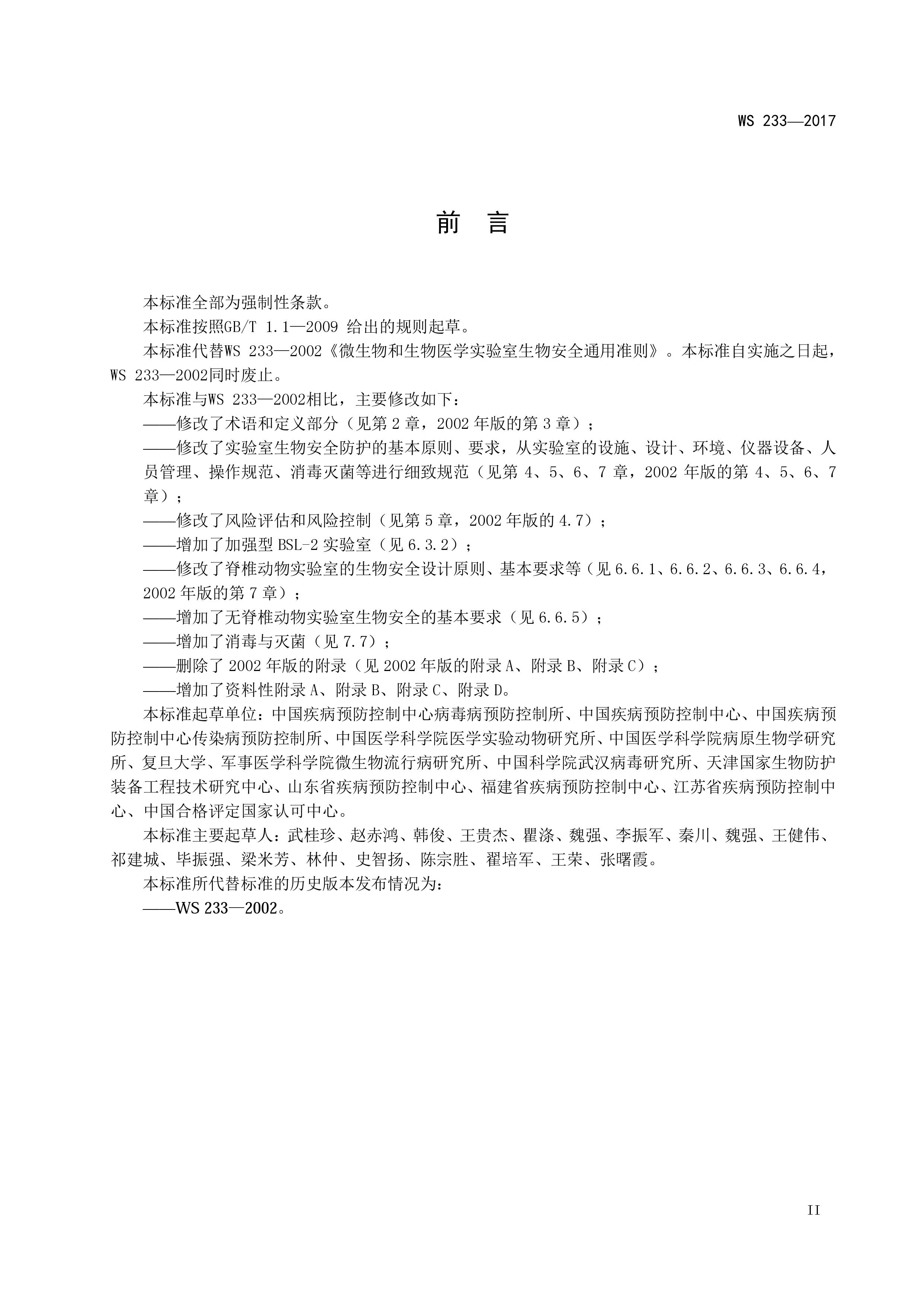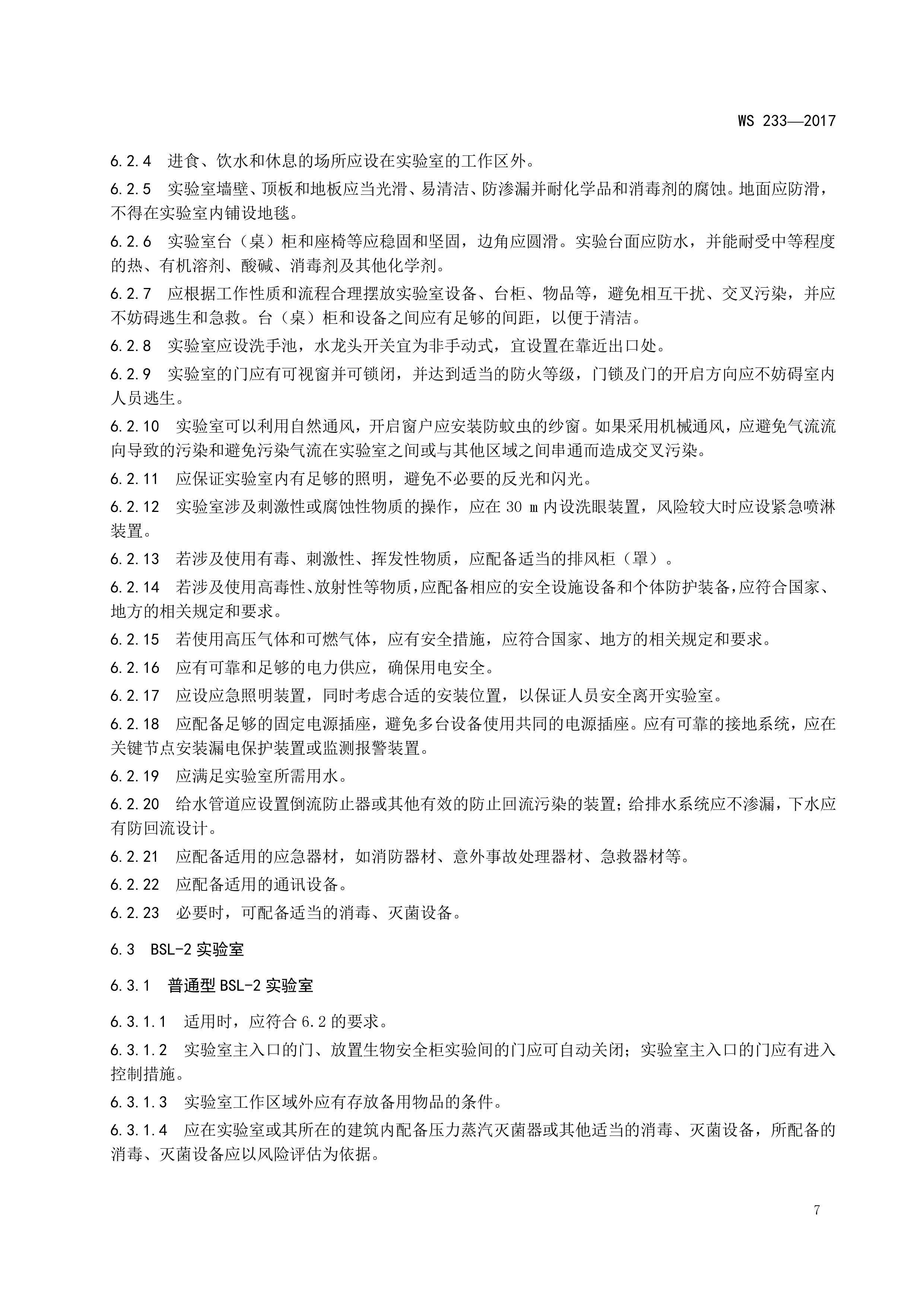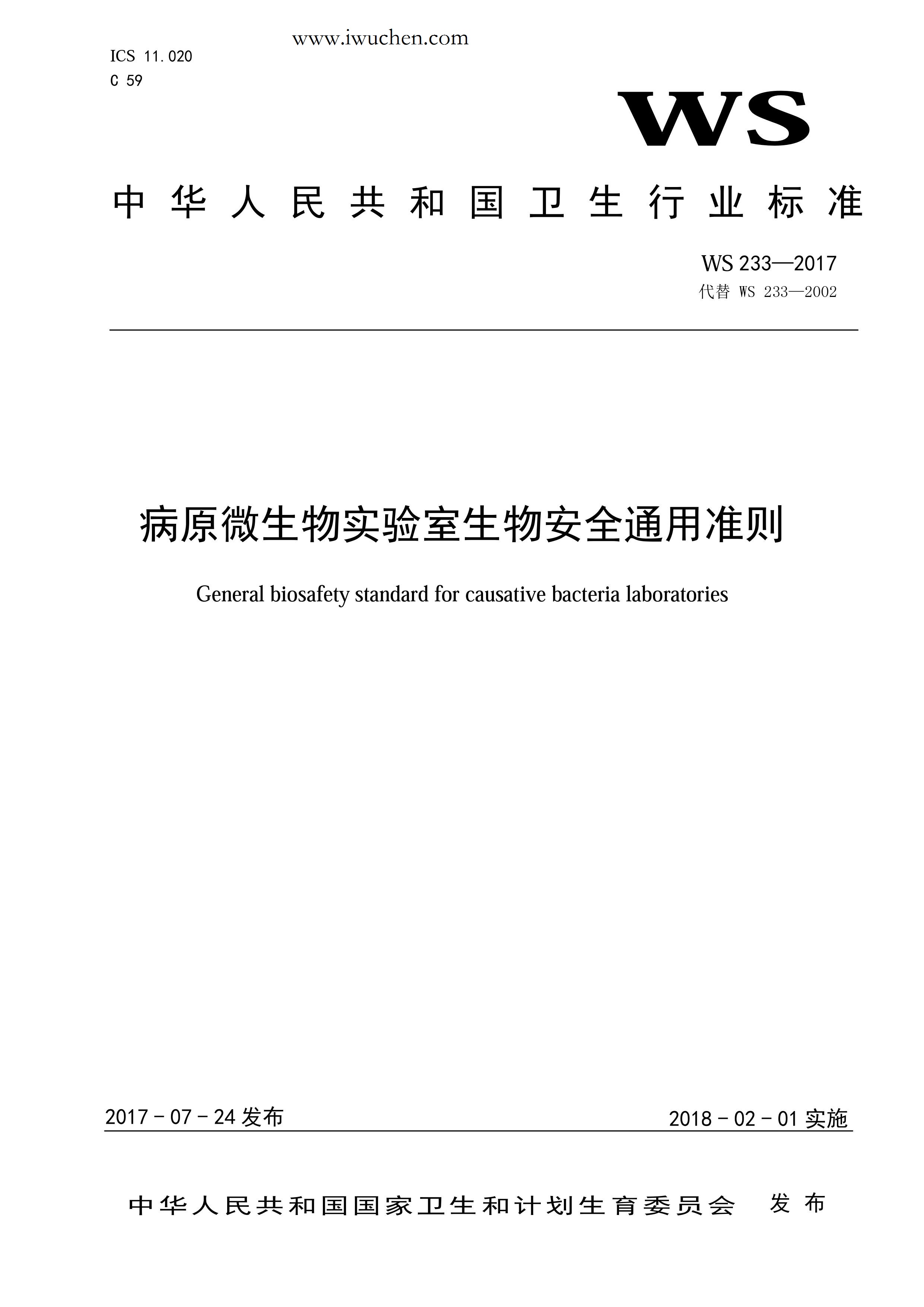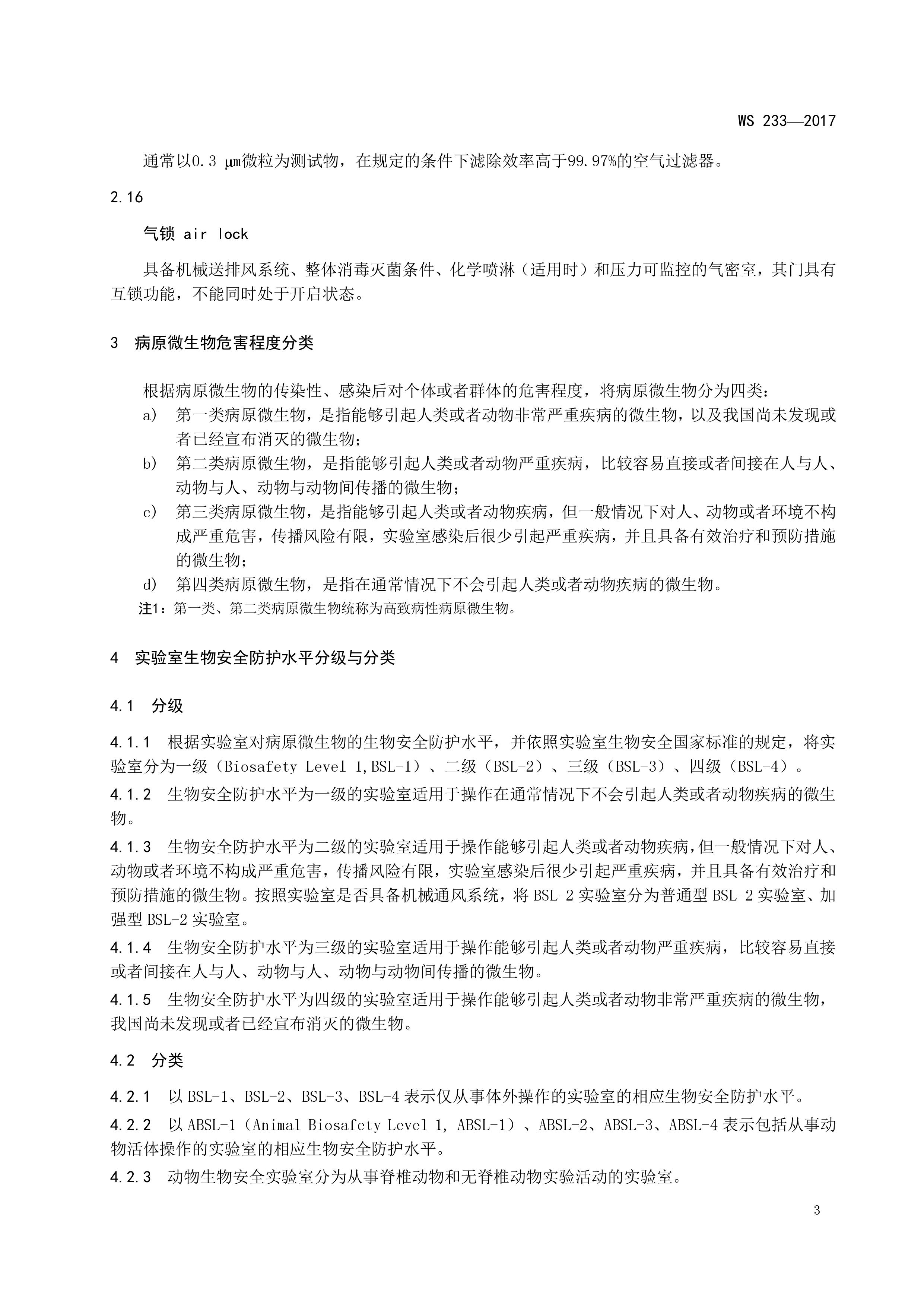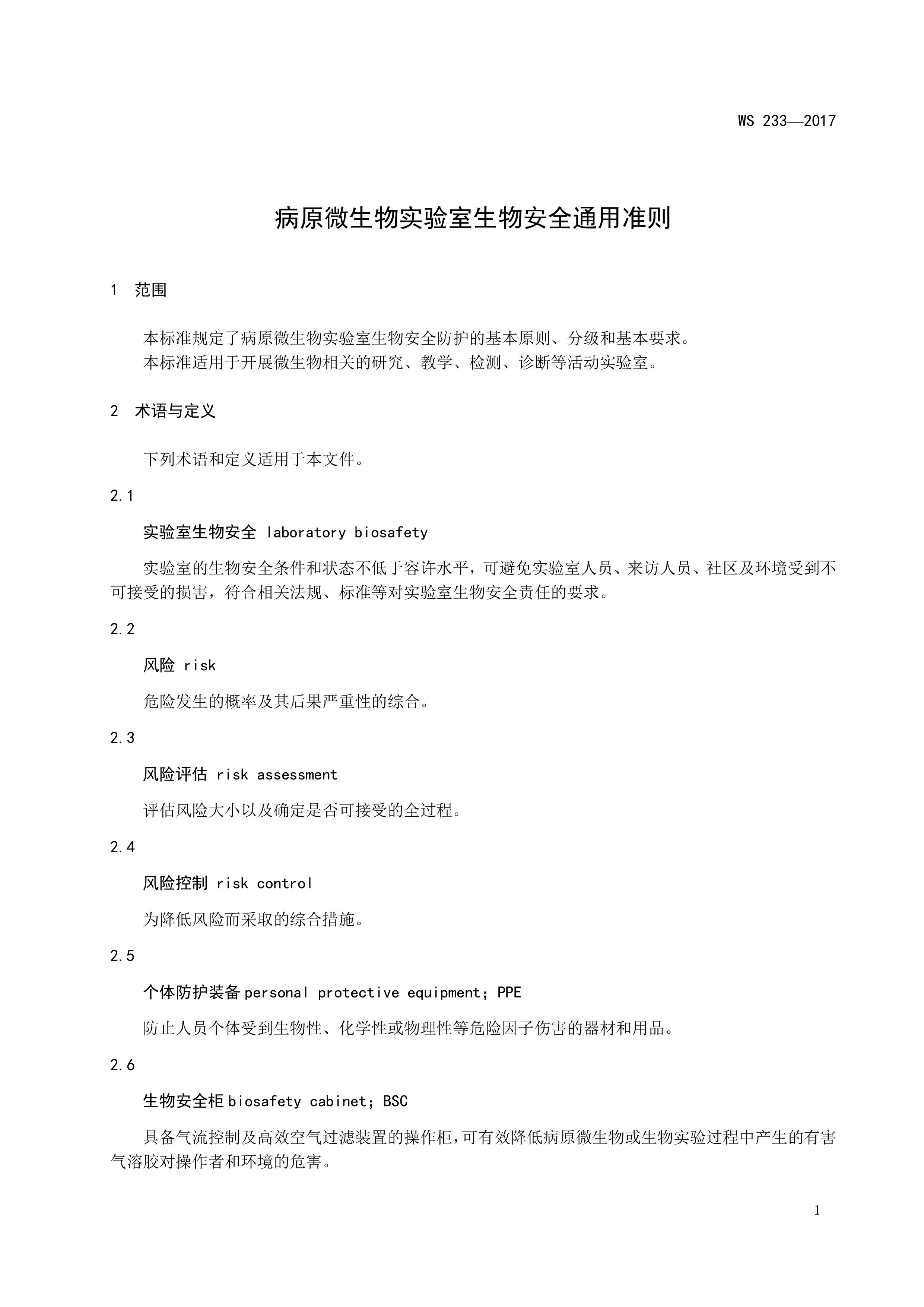 病原微生物实验室生物安全通用准则WS233-2017(全文版)
