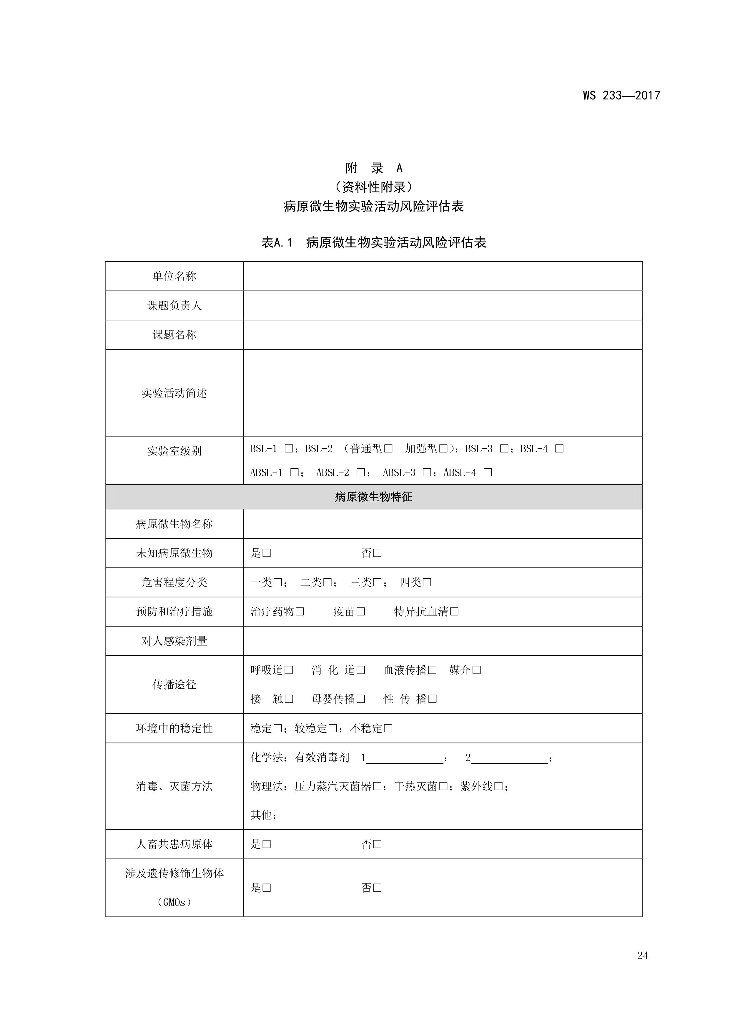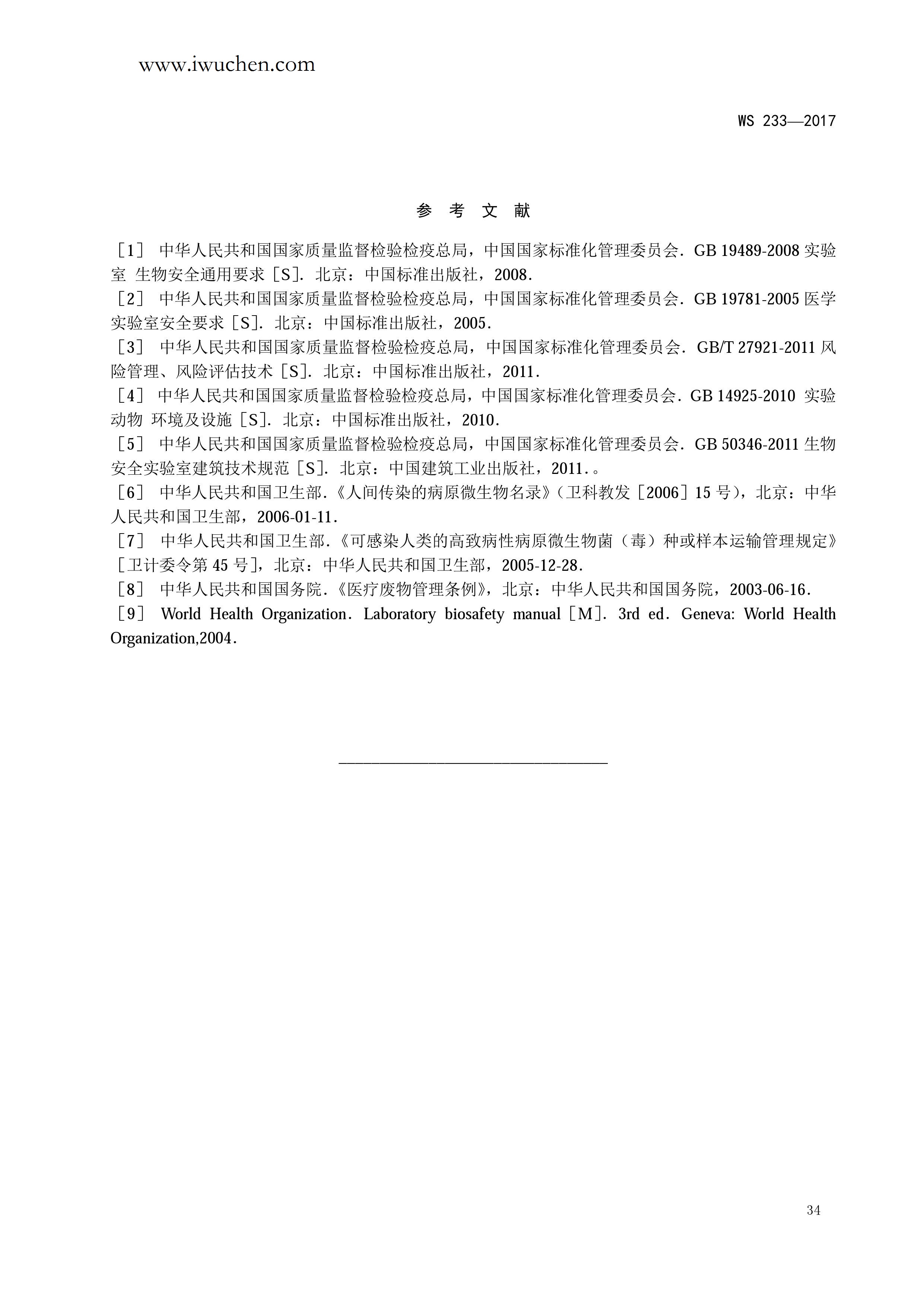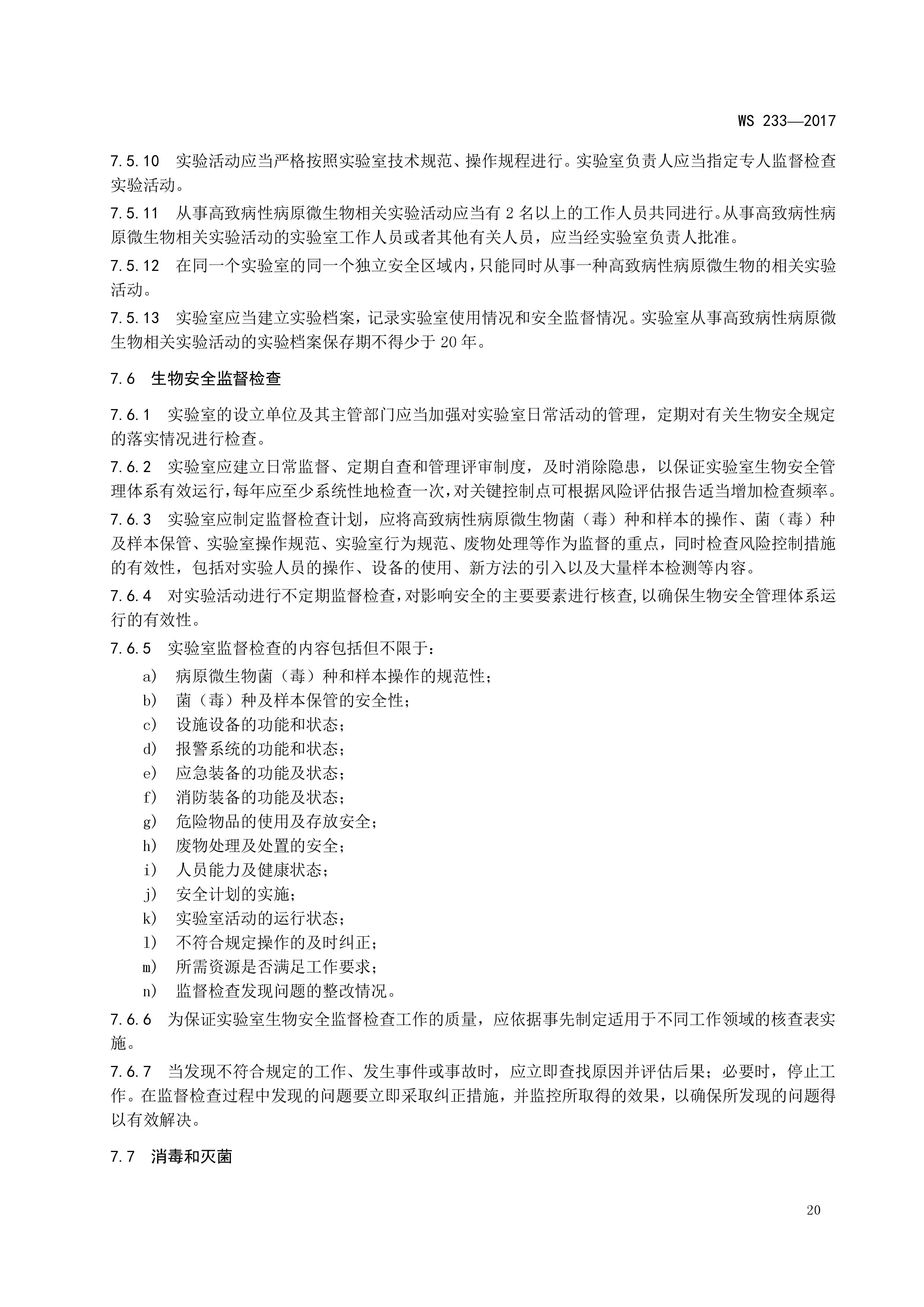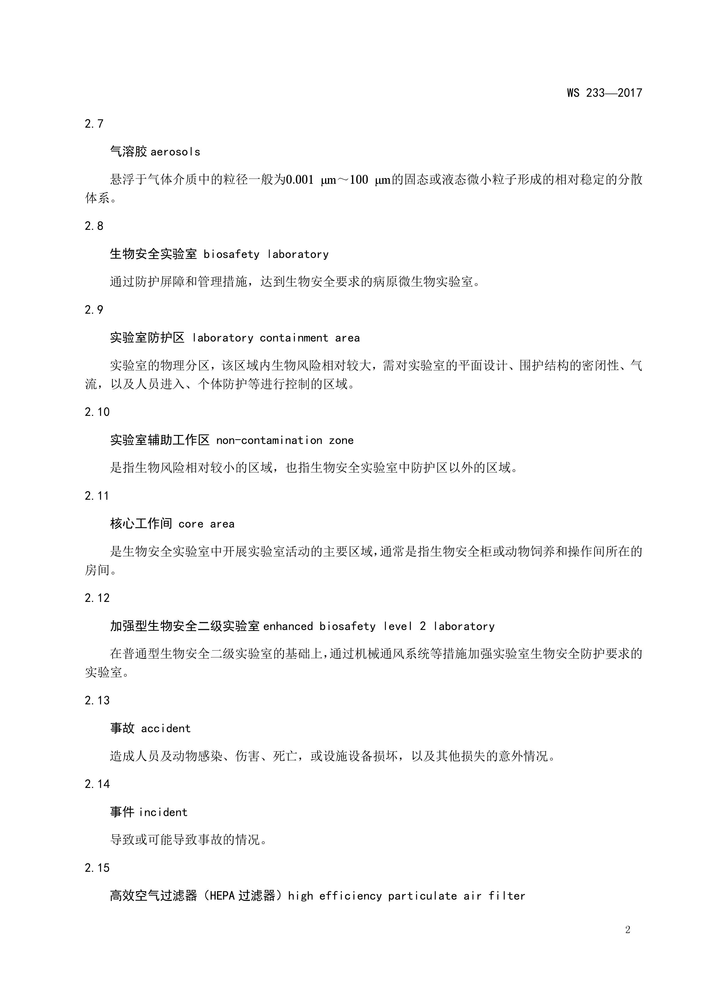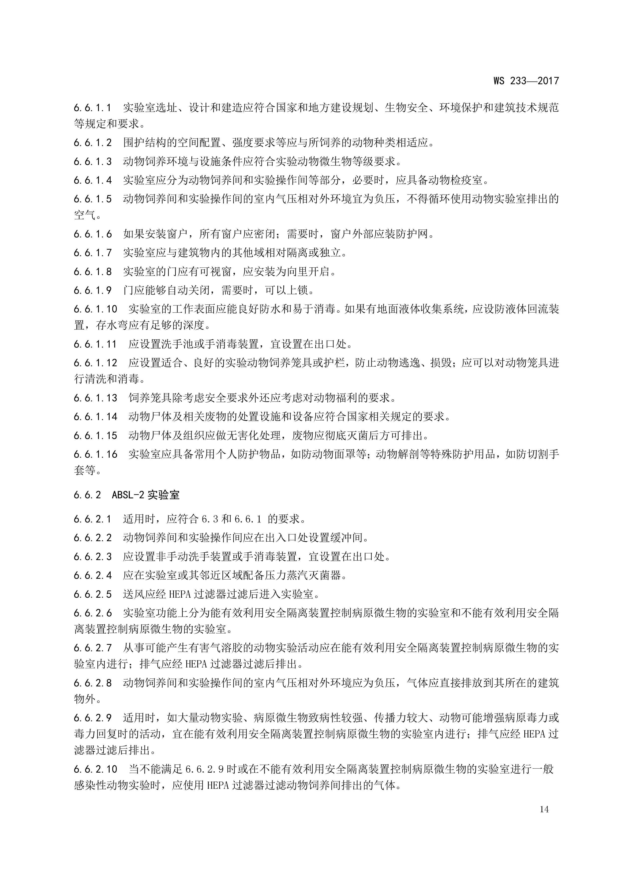 病原微生物实验室生物安全通用准则WS233-2017(全文版)