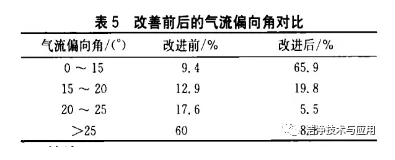 通风队格栅开孔率进行局部调整,气流偏向角明显减小,改善前后气流偏向角的对比结果如表5所示。从计算看,气流偏向角超过25度的测点由60%下降到8.8%,气流偏向角的平均值减小到14度,基本能够满足使用要求。