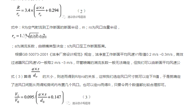 在做好负荷、风量和气流组织的计算,并根据冷量风量选取空调机组后,接下来的工作就是布置风口,而每间房间布置几个送风口、风口间距多少,不应简单的按经验确定,而应该做风口的空气射流计算,自由射流计算公式见公式2。