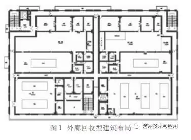 根据此大楼的整体平面,结合我国现在的国情和关于《药品生产质量管理规范》中对于生产环境的要求,该建筑采用外廊回收型布局(见图1),充分体现洁污分流、流程最短的原则,主要生产房间和直接为生产房间服务的辅助用房形成生产核心区。此种建筑布局配合合理的空调系统房间正压布局,我们就可以有效的控制污染物的流向,将药品在生产、传送和储存中所受到的污染降到最低。