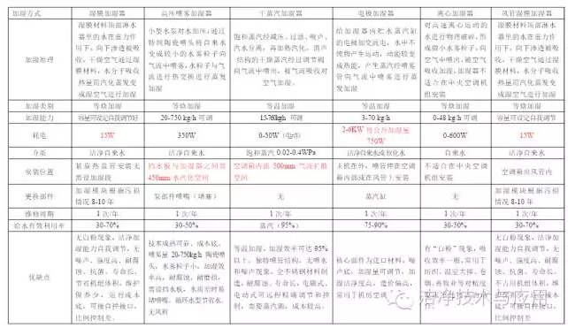3、缺点:加湿效率低,需供水量大,加湿模块结垢严重,加湿模块如用普通材料,可能繁殖细菌,空气温度降低。