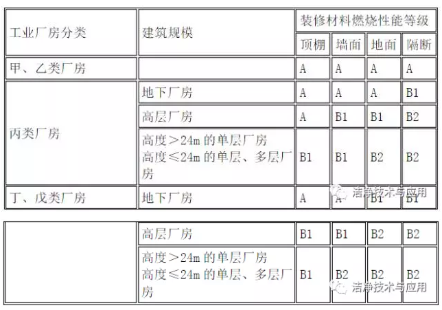 厂房内部各部位装修材料的燃烧性能等级应符合下表规定