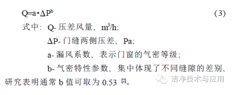 将接毒无菌室的压差和风量参数代入式( 3) 中进行计算, 得出漏风系数a, 由此确定了各房间门的气密性公式。