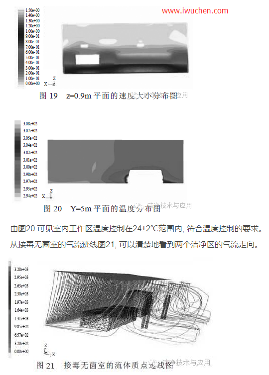 从接毒无菌室的气流迹线图21, 可以清楚地看到两个洁净区的气流走向。