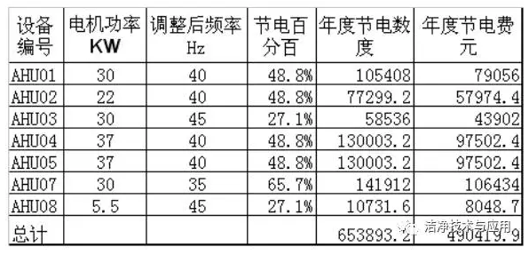 换气次数=20次/小时,日常尘埃粒子检测数据与标准对比,还有通过减少换气次数节能的潜力。同时有在不生产期间维持最低频率运行的节能潜力。等待进一步研究实现。