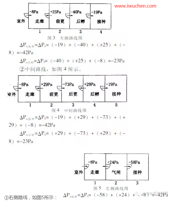 ②以每间对下一间的相对压差为准,记为±ΔPn,最内间为n,以后逐次减1。