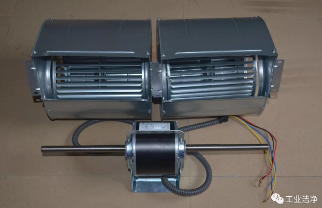 风机:由单向多速低噪声感应系统电动机带动,通过调节输入电压改变风机转速,使风机风量分为高、中、低三档,由电器开关控制,相应调节风机盘管的供冷(热)量。风机是输送空气的动力源,又是强化空气侧对流换热(盘管外表面)的扰动源,与电动机一起又是机组的主要噪声源。