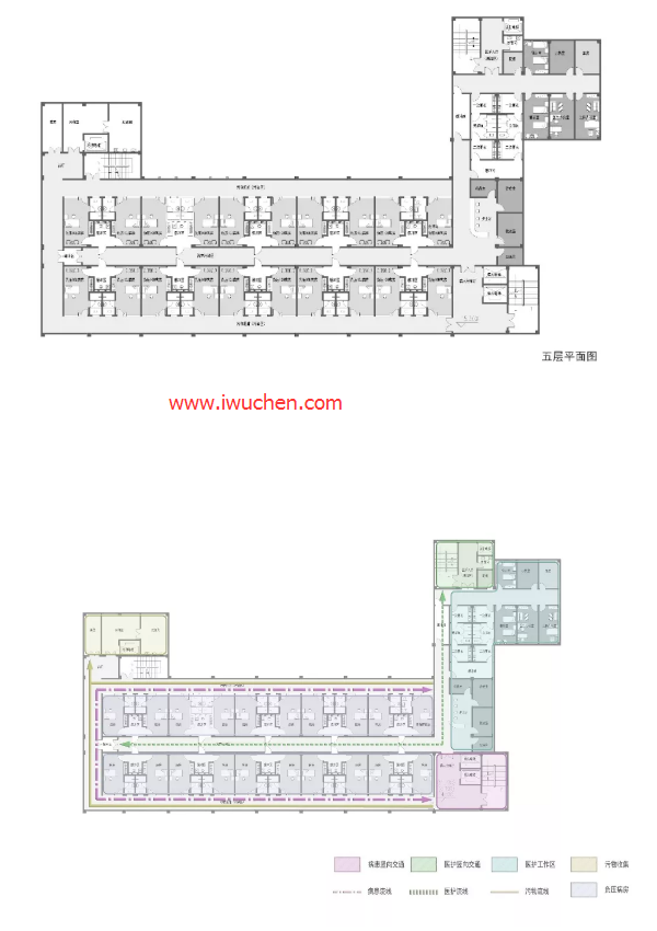 六层:负压手术室,部分医技用房,会诊室,以及医护人员休息室等。