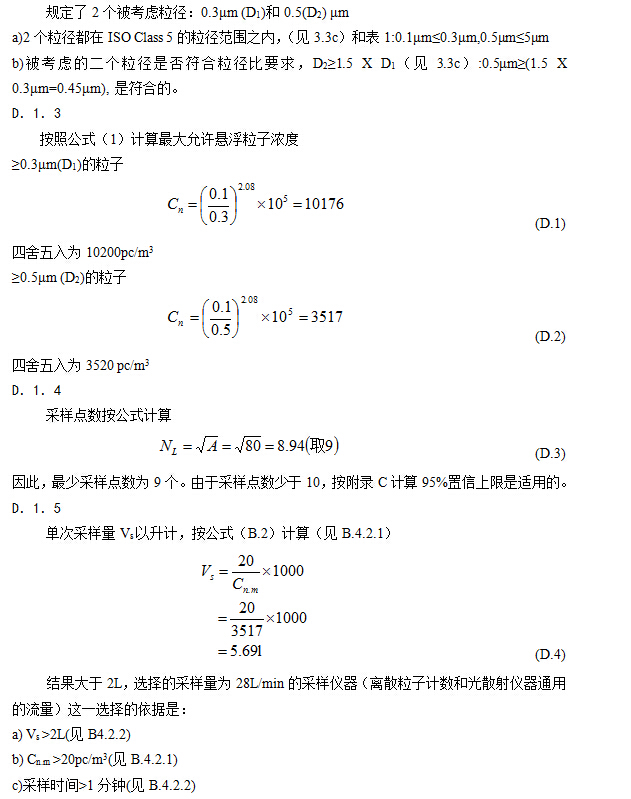 注3 适用于按本国际标准分级的粒径(低阈值)范围限于0.1μm-0.5μm。分级范围之外的阈值粒径之空气洁净度可以用U或M描述符(见2.3.1或2.3.2)来说明和规定(但不是分级)。