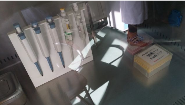 工作结束后,必须立即对工作区进行清洁(次氯酸钠)。实验台表面的紫外照射应当方便有效(可移动紫外灯,254nm波长),在工作完成后调至实验台上60~90cm内照射。