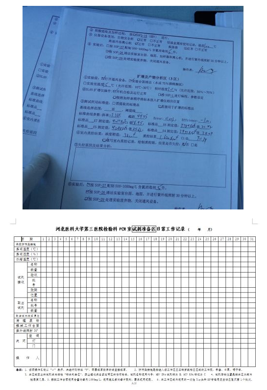 7.报告:具体方法学(实时荧光定量/定性PCR)、标本类型及性状说明、唯一编号、阴阳性及定量、参考范围/最低检测限的确定、送检时间(具体到时)、报告时间(具体到分)、备注(结果仅对此标本负责。如有疑问,请于一周内到PCR实验室查询!)