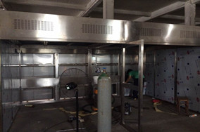 4.6产生有害气体、粉尘的称量间、称炭间、原料暂存间、挤出注塑间、以及湿度过大的洗袋间、配料间设局部排风装置,并相对与其它洁净区负压差。
