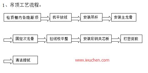 本工程的装饰工程主要为洁净区内的吊顶、隔断,采用50mm厚的夹心钢板,与其他装饰工程不同之处在于他有洁净方面的要求,因此下面将重点叙述。