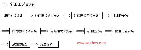 (2)沿施工线安装隔墙地轨,以膨胀螺丝钉或射枪钉钉在地板上固定