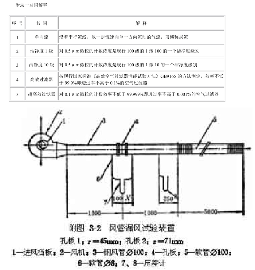 第3.1.1条 净化空调系统的一般要求和风管部件的具体制作验评方法,应分别符合现行国家标准《通风与空调工程施工及验收规范》GBJ243和《通风与空调工程质量检验评定标准》GBJ304的有关规定。