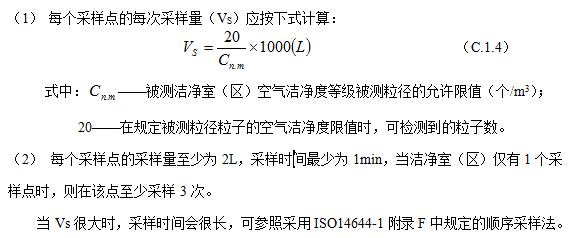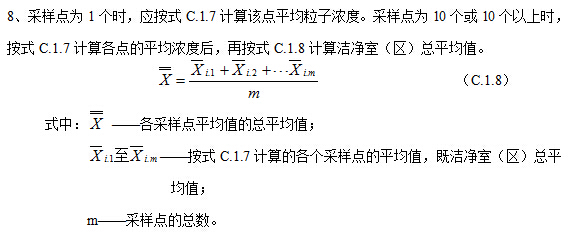 (4) 如果每个采样点测得粒子浓度的平均值以及洁净室总平均值95%置信上限均未超过空气洁净度等级的浓度限值,则认为该洁净室(区)已达到规定的空气洁净度等级。