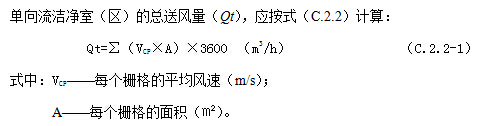 单向流洁净室(区)的总送风量(Qt),应按式(C.2.2)计算: