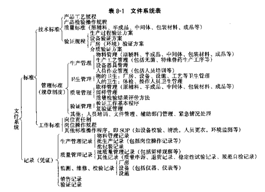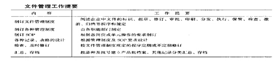 文件的管理是指包括文件的设计、制订、审核、批准、分发、执行、归档以及文件变更等一系列过程的管理活动。因此,企业应制订文件管理制度。内容包括各类文件的保管和归档应符合要求,各种生产记录应保存3年或产品有效期后1年。