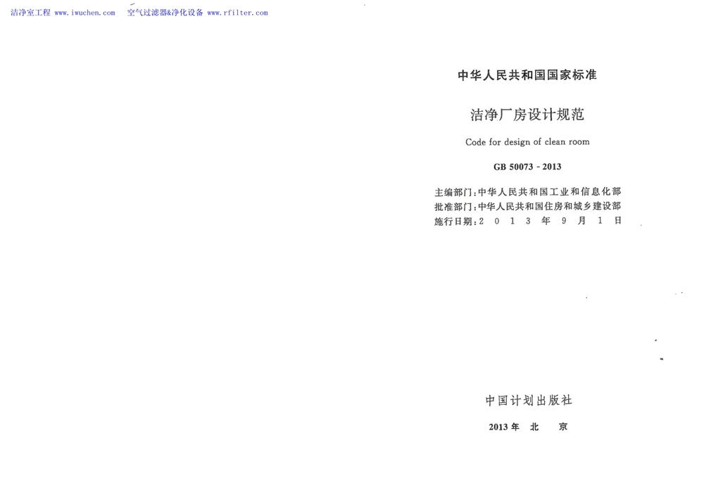 本规范由住房和城乡建设部第1627号公告发布,自2013年9月1日起实施。其中51条(款)为强制性条文,必须严格执行。原国家标准《洁净厂房设计规范》GB 50073-2001同时废止。
