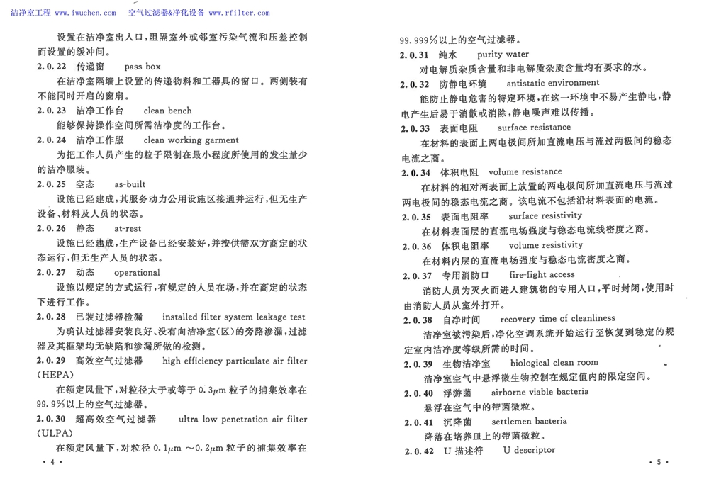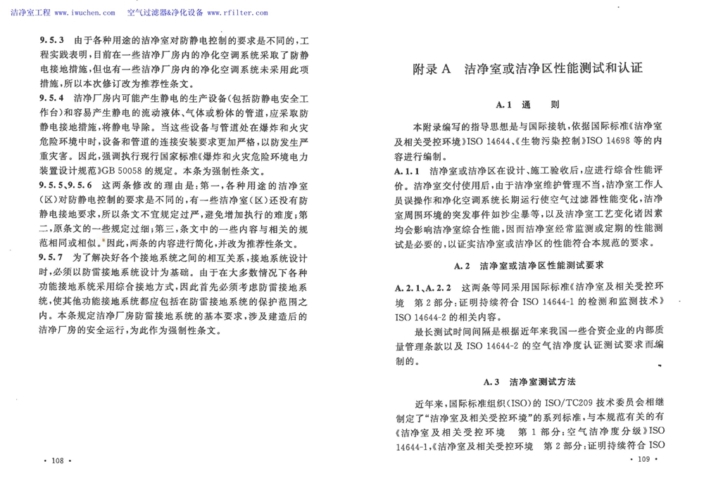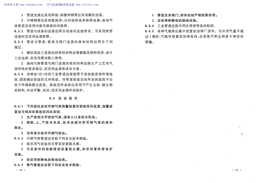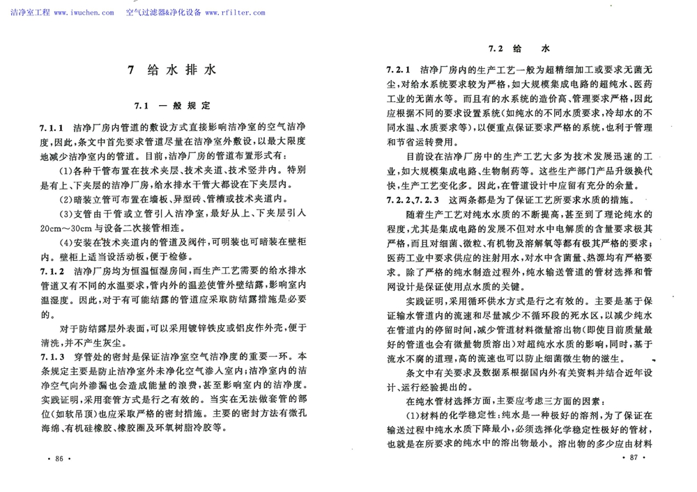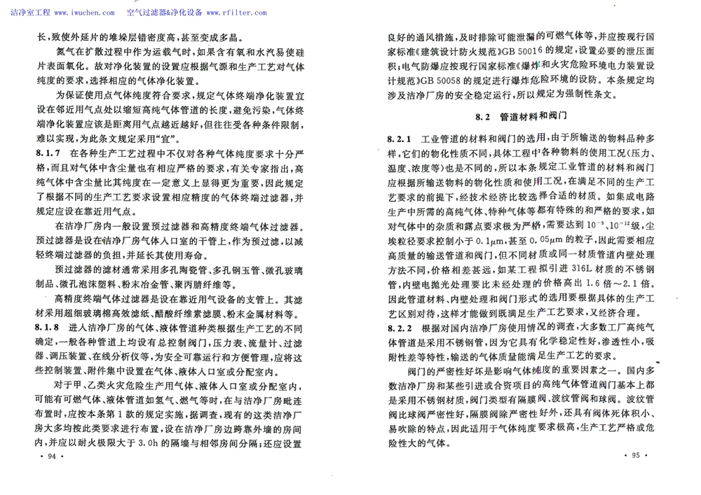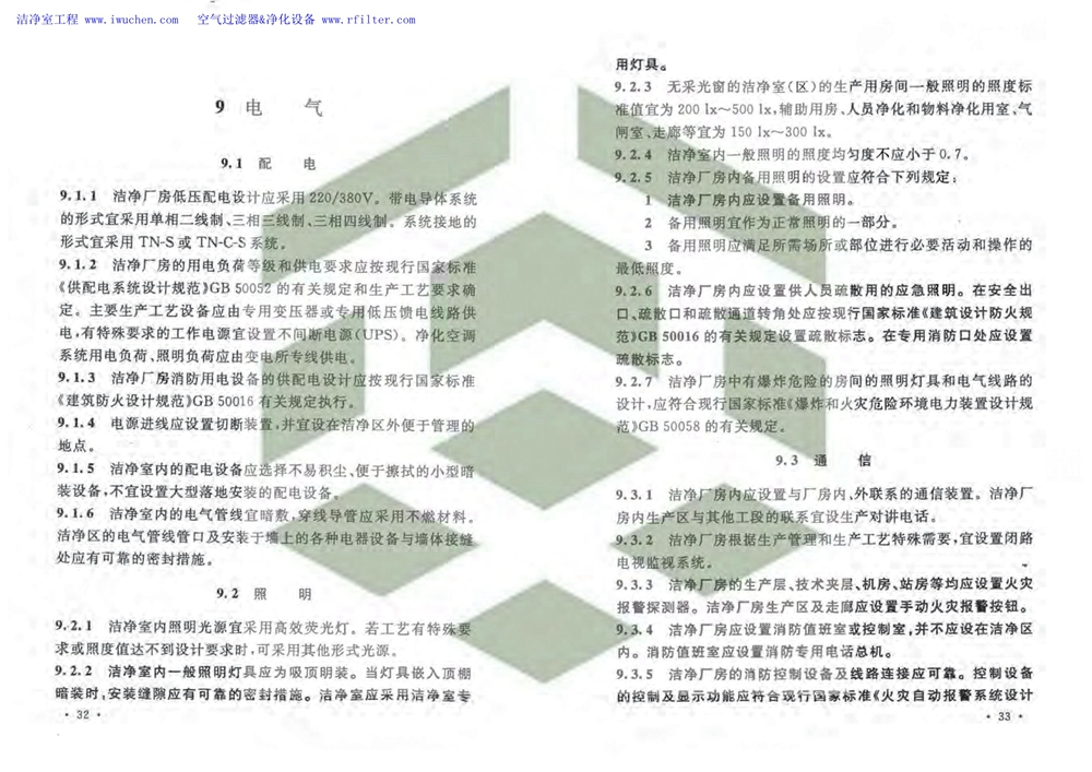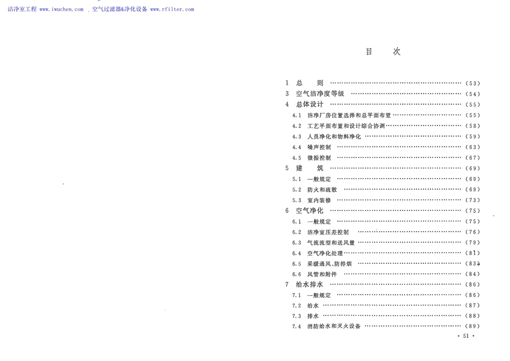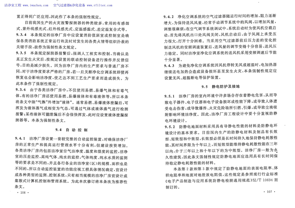 本规范共9章3个附录,主要内容包括:总则,术语,空气洁净度等级,总体设计,建筑,空气净化,给水排水,工业管道,电气。