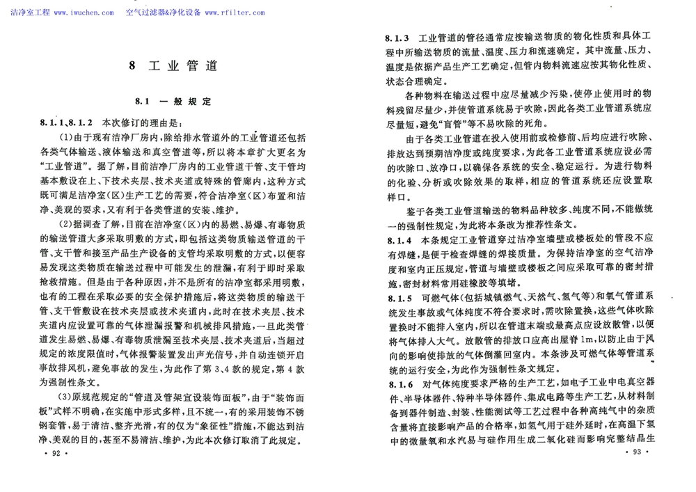 《中华人民共和国国家标准(GB 50073-2013):洁净厂房设计规范》主要的修订技术内容是:修改了第2章术语;对第3章空气洁净度等级的相关内容作了修改和补充;修改了第8章,更名为“工业管道”;修改了部分“强制性条文”为“非强制性条文”。