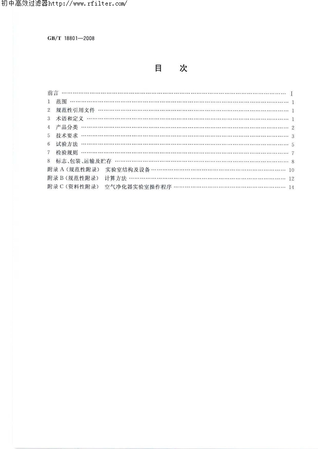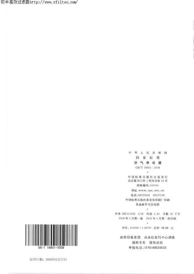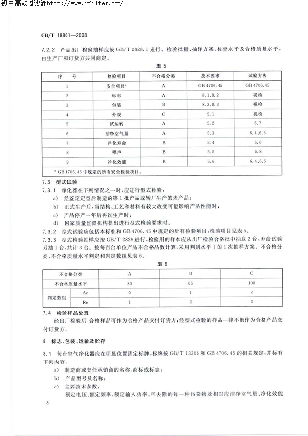 GBT18801-2008空气净化器标准