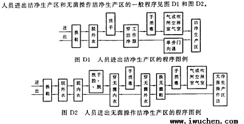 人员进出洁净生产区和无菌操作洁净生产区的一般程序见图D1和图D2。