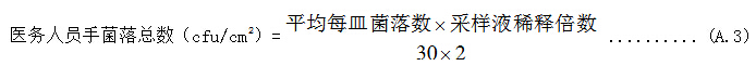消毒液染菌量(CFU/mL)=平均每皿菌落数×10×稀释倍数 …………(A.6)