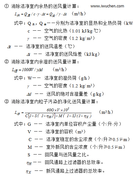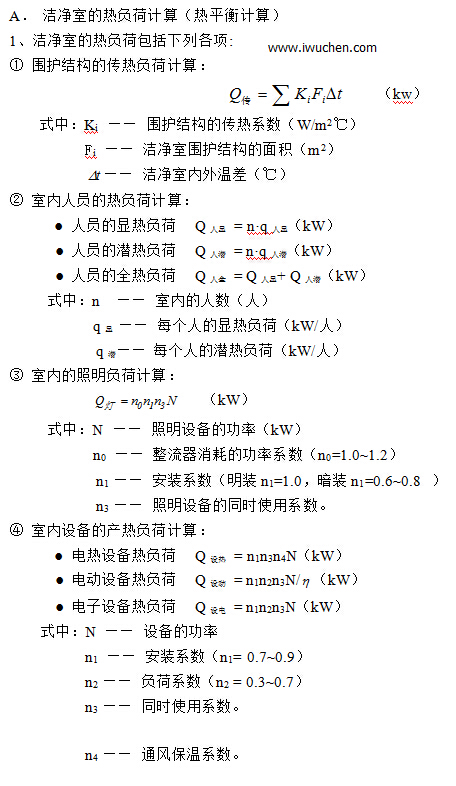 A. 洁净室的热负荷(Q)计算(热平衡计算)