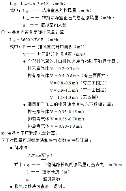 ④ 洁净室的冷负荷中的主要负荷是新风冷负荷,消除工艺设备和工艺过程产热的冷负荷和抵消风机和水泵发热的冷负荷,这三项负荷占总冷负荷的90%以上;而围护结构、照明和作业人员三项冷负荷不足总冷负荷的10%。
